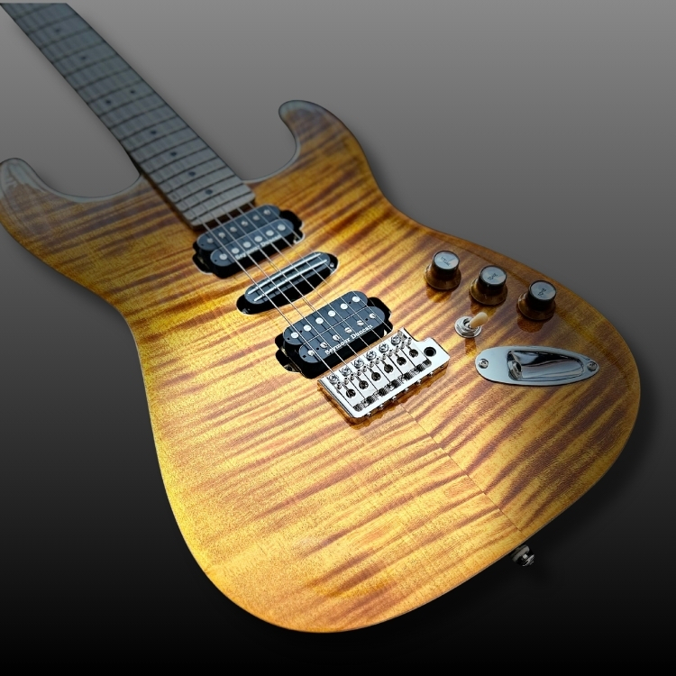 Kombinacija tulipwood tijela i javorovog topa donosi balansiran ton s jasnom artikulacijom i toplinom u srednjem spektru. Seymour Duncan HSH konfiguracija omogućuje širok raspon zvukova – od čistih i definiranih tonova do snažnog, punog drivea.